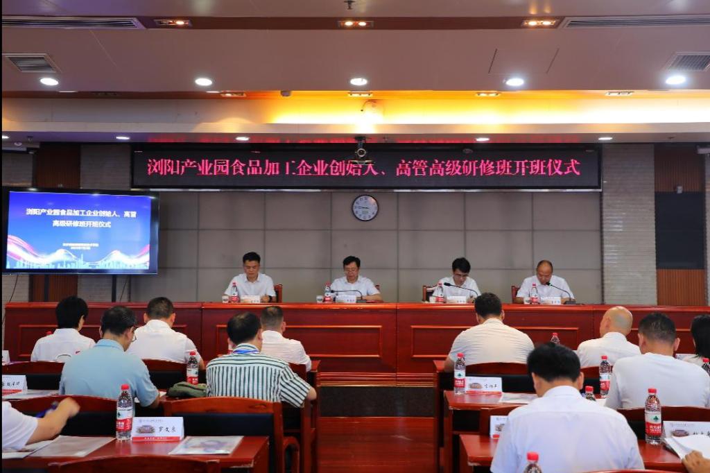 7月3日,由我校主办的浏阳产业园食品加工企业家研修班正式开班。学校党委副书记、校长崔德明出席并致辞,党委副书记金立槟出席并主持,浏阳市农业科技园发展中心党组书记、主任戴仲和,湘菜食材产业协会会长唐步聪出席。研修班聚焦湘菜(预制菜)产业升级与国际化发展,吸引了浏阳30余家企业核心管理人员参与。